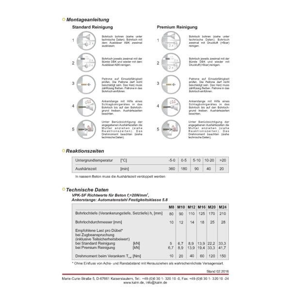 Der KALM Verbundanker VPK-SF ist ein styrolfreier, zugelassener Hochleistungsanker für schwere Verankerungen in ungerissenem Beton.